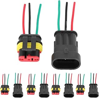 GTIWUNG 5 Set 3 Pin Way Wasserdichter Stecker, Auto wasserdichte Elektrische Stecker, 3-Pinlig Elektrischer Anschluss Stecker mit Draht, 3-Poliger Kabel Steckverbinder Stecker für LKW/Auto/Motorrad