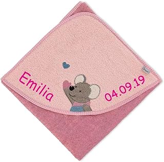 Sterntaler Kapuzenhandtuch Maus Mabel Herzen mit Namen bestickt 100x100 cm Handtuch Baby Geschenk zur Geburt Badehandtuch