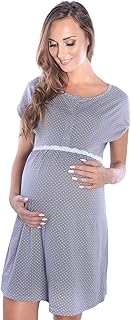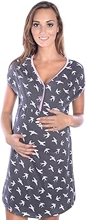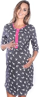 Frauen Pflege/Geburt/Krankenhaus Nachthemd Kurzarm Nachthemd Umstandsnachthemd mit Knopf Stillnachthemd für Schwangere und Stillzeit