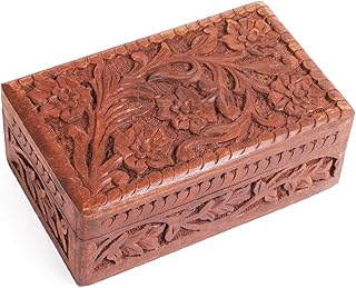 Artisans Of India Exotische Schmuck-Aufbewahrungsbox aus Holz, für Schmuck, Andenken, Schatztruhe, Aufbewahrung von Uhren, Erinnerungen, Münzen, Spielkarten, Organizer, handgeschnitzt (Mangowood)