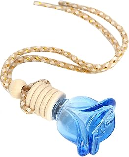 iTimo Glasflasche zum Aufhängen, Auto-Parfümflasche für ätherische Öle, Parfüm-Anhänger, Autodekoration, Blumenform, Lufterfrischer, Auto-Styling (blau)