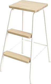 LM 184 Tritthocker mit 3 massiv Holz Stufen, Stahlrohr-Rahmen, Haushaltsleiter 3 Stufen, Kleine Trittleiter, Hocker Küche, Stufen Birke/Rahmen Weiß