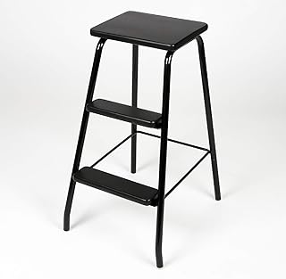 LM 184 Tritthocker mit 3 massiv Holz Stufen, Stahlrohr-Rahmen, Haushaltsleiter 3 Stufen, Kleine Trittleiter, Hocker Küche, Stufen Schwarz/Rahmen Schwarz