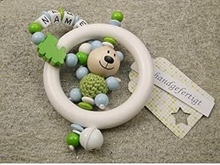 LALALO Premium Grasping Toy with Name, Teddy Bear and Crown, Wooden Baby Rattle, Teething Ring, Educational Toy as a Gift for Birth and Christening (Blue): Amazon.de: Toys & Games LALALO Premium Greifling mit Name, Lokomotive + Stern, Holz Baby Rassel, Beißring, Lernspielzeug als Geschenk zur Geburt & Taufe, Junge (Blau). EINZIGARTIGER, in Handarbeit gefertigter Lokomotive Greifling von LALALO mit dem Namen des Kindes in Blau für Jungen. HOHE QUALITÄT: Die verwendeten