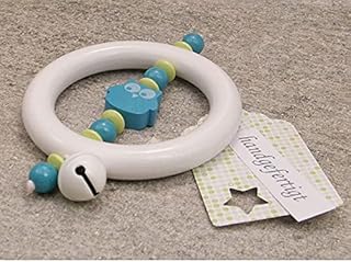 Baby Greifling Rassel Beißring - Holz Lernspielzeug als Geschenk zur Geburt Taufe - Mädchen Jungen Motiv Eule in türkis