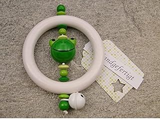 Baby Greifling Rassel Beißring - Holz Lernspielzeug als Geschenk zur Geburt Taufe - Mädchen Jungen Motiv Frosch in grün