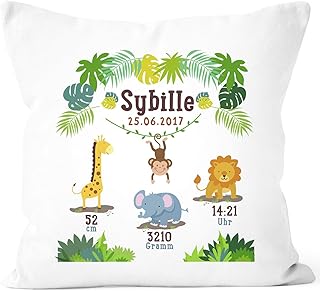 SpecialMe® Geburtskissen Dschungel Safari Löwe Elefant Giraffe Namenskissen personalisierbares Kissen zur Geburt Junge Mädchen, Kissen-Bezug ohne Füllung weiß Unisize