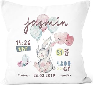 SpecialMe® personalisierbares Kissen zur Geburt mit Hase, Geburtskissen, Namenskissen Geschenk Geburt Baby Mädchen Wunschname, Kissen-Bezug ohne Füllung weiß Unisize