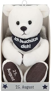Depesche 8139.238 - Schutzengel Bär aus Plüsch, ca. 9 cm, mit Datum 25. August, Geschenk für Geburtstag, Jahrestag oder Hochzeitstag