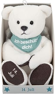 Depesche 8139.196 - Schutzengel Bär aus Plüsch, ca. 9 cm, mit Datum 14. Juli, Geschenk für Geburtstag, Jahrestag oder Hochzeitstag