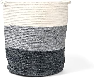 Feiner großer Wäschekorb aus 100% Baumwolle mit Seil, 40,6 x 45,7 cm, groß, gewebter Korb, für Kinderzimmer, Geschenk, mit Griffen für Spielzeug, Wäsche und Baby-Anker (3 Farben)