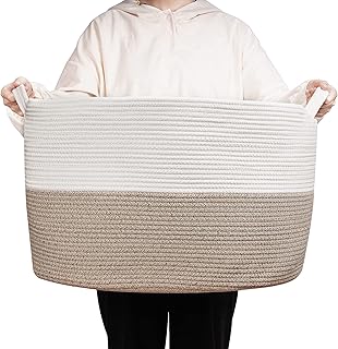 COSYLAND Baumwollseilkorb Wäschekorb TÜV-Zertifiziert Geflochtener Korb Decke Korb Aufbewahrungskorb mit Griff für Decken Kissen und Spielzeug Wohnzimmer Boden Kinderzimmer S5