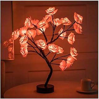 HFeng Tischlampe, Kreative Rose Blume Baum Licht Baum Form Rose Blume Bonsai LED Dekorative Licht Home Dekoration LED Energiesparlicht Geeignet für Urlaub Party und Hochzeit